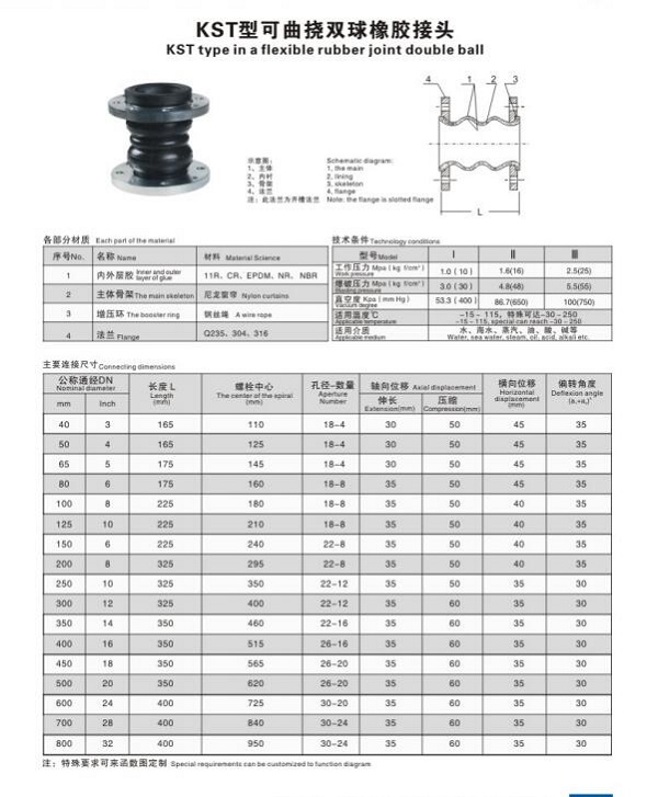 KST型(xíng)可曲撓雙球橡膠(jiāo)接頭